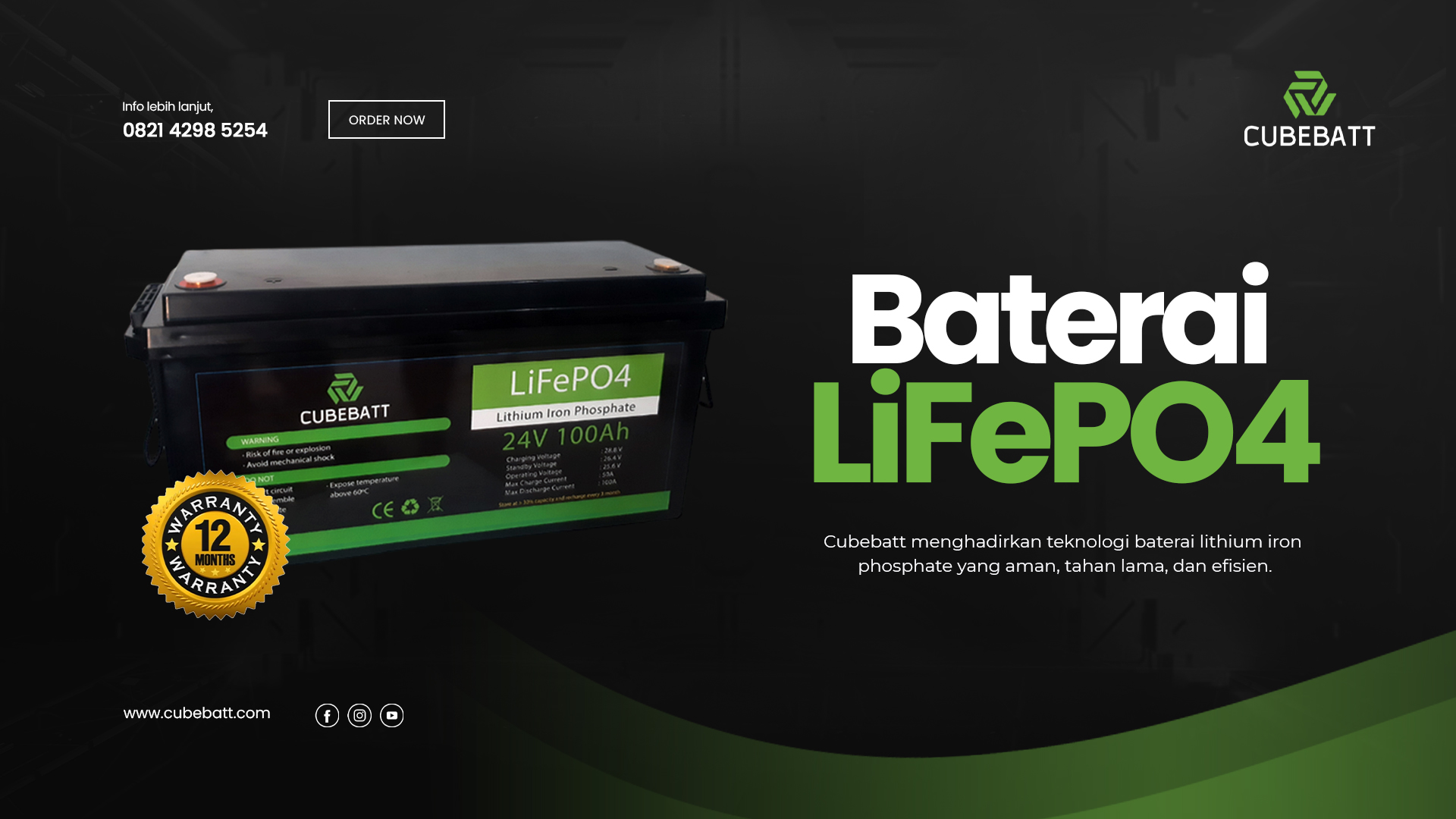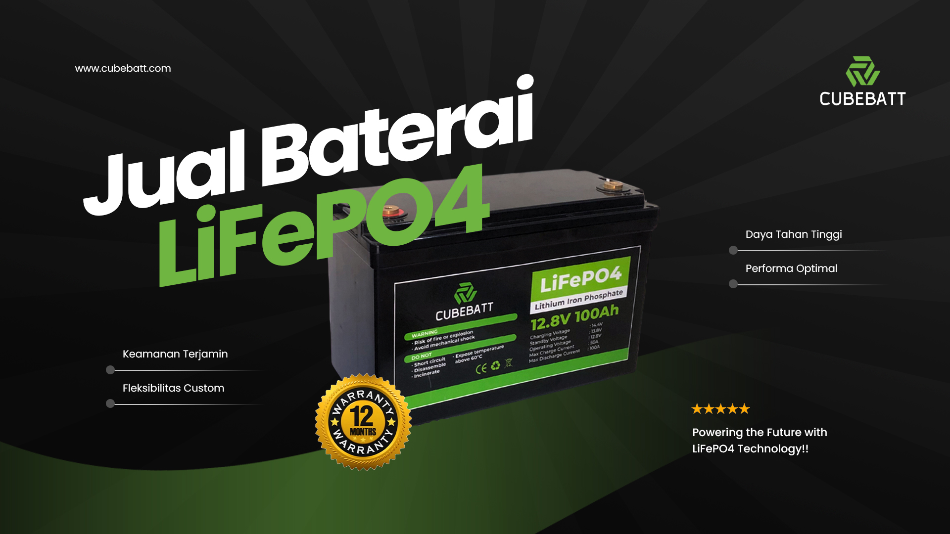 CUBEBATT bergerak di bidang produksi dan inovasi baterai berbasis teknologi LiFePO4 (Lithium Iron Phosphate).